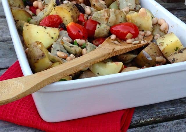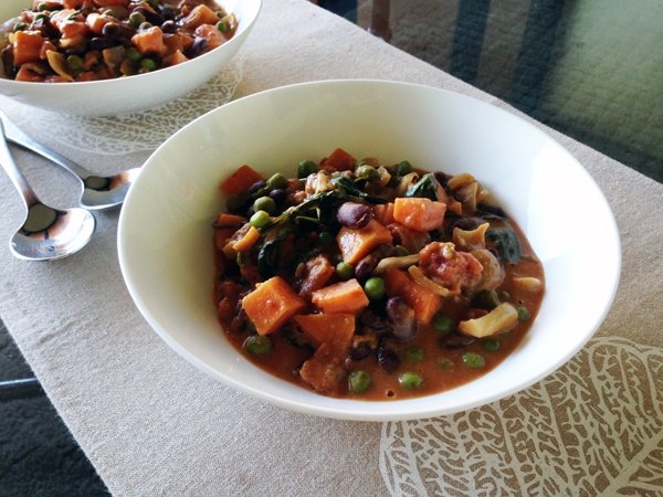 When baked, it serves up nicely on quinoa or brown rice, but could also be tossed through pasta. Also, it can be eaten all on its own, as the beans and potatoes make it quite substantial.